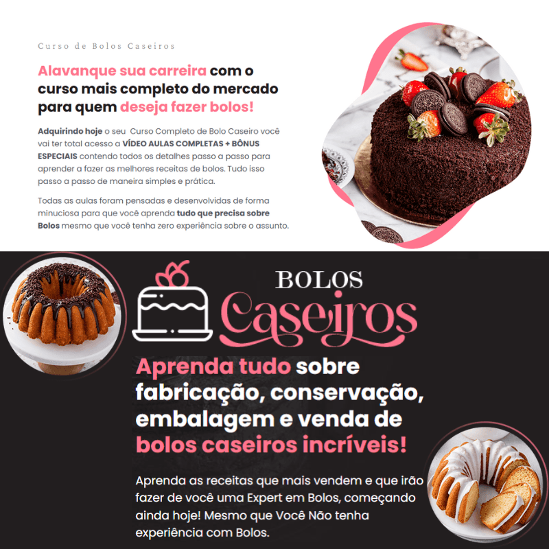 O conteúdo do Curso de Bolos Caseiros é cuidadosamente elaborado para atender diferentes perfis de alunos: