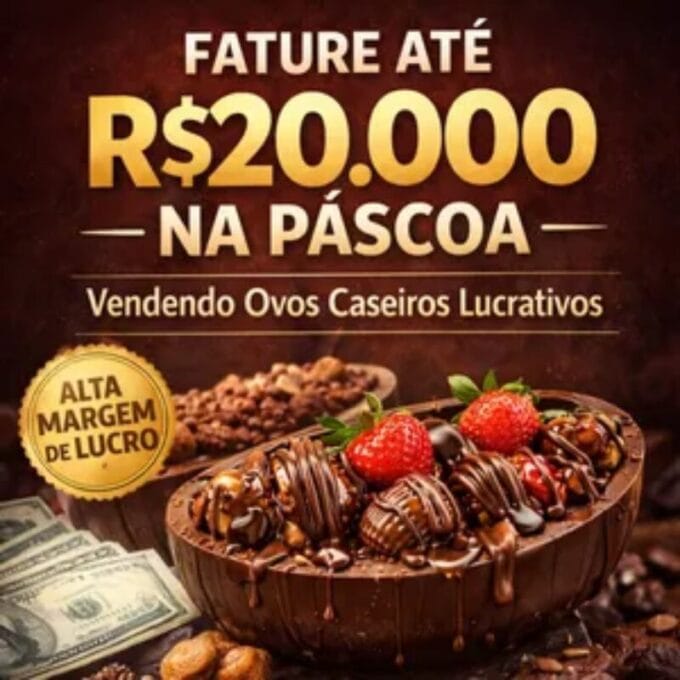 Se você já pensou em transformar a Páscoa em uma oportunidade real de negócio e gerar lucros de verdade, o Ebook Fature até R$20.000 na Páscoa Vendendo Ovos Caseiros Lucrativos é o caminho mais completo e inteligente para alcançar esse objetivo. Com um passo a passo simples, didático e acessível para quem nunca fez um ovo de chocolate, este guia revela tudo o que você precisa saber para produzir e vender Ovos de Páscoa Caseiros Lucrativos de alta demanda no mercado.