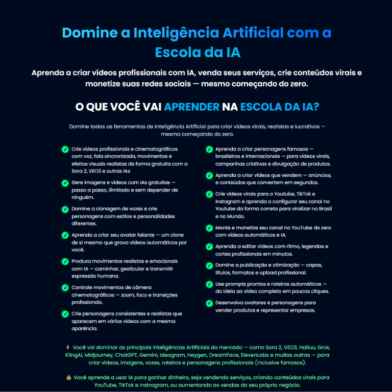 🤖 Escola da IA – Domine Inteligência Artificial, Crie Conteúdos Profissionais e Ganhe Dinheiro com IA